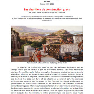 Conférence de Pierre Péfau (IRAA, UAR 3155 Lyon) et Frédéric Épaud (LAT, UMR 7565), organisée en partenariat avec l’Inrap. Les gravures rupestres architecturales du Valcamonica (Lombardie, Italie) forment le corpus de représentations de constructions en bois le plus ancien d’Europe et offrent une opportunité rare d’étudier des élévations d’édifices de l’âge du Fer. Connues depuis le milieu du XXe siècle, elles n’ont jusqu’à présent jamais fait l’objet d’une analyse architectonique. Celle proposée dans cet article révèle la remarquable diversité…